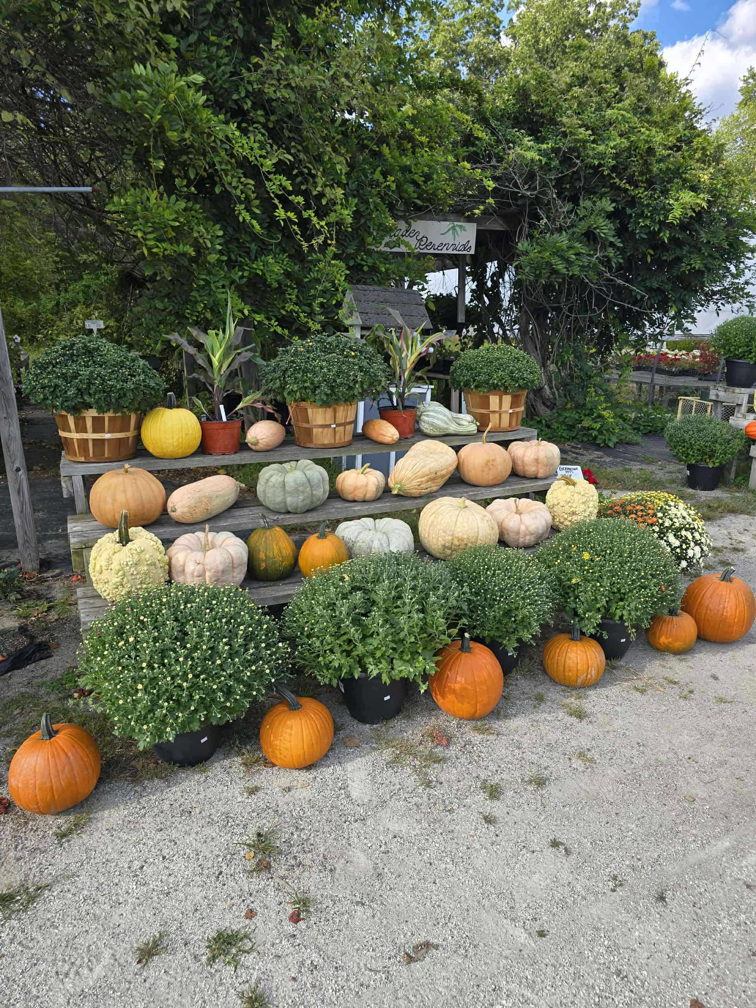 This is late to announce it but perennials are 50 percent off, trees are 40 percent off, shrubs are 40 percent off and pumpkins are 50 percent off!!! Come on down to Frizzhome Gardens ASAP. We are open through October 18th.